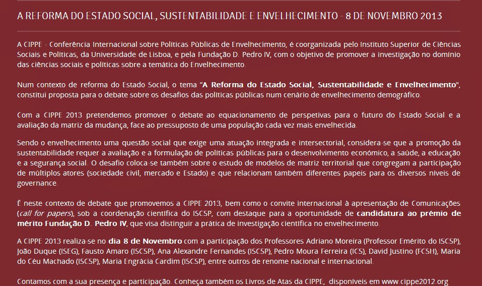 Conferência "A reforma do Estado Social, sustentabilidade e Envelhecimento"